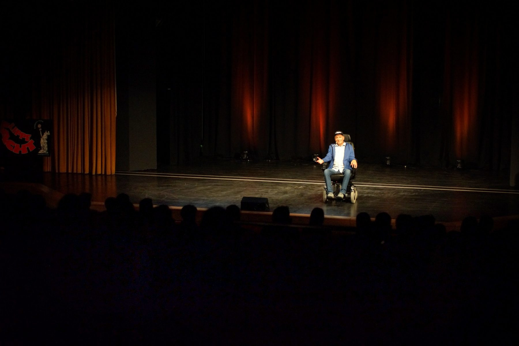 Ja, das Publikum ist oft zurückhaltend wenn ein Rollstuhlfahrer auf die Bühne kommt. Wahrscheinlich denkt man „so ein Schicksal bzw. im Rollstuhl sitzen zu müssen ist alles andere als lustig. Da kann man nicht lachen“. Aber schon nach ein paar gelungenen Gags läuft alles gut.